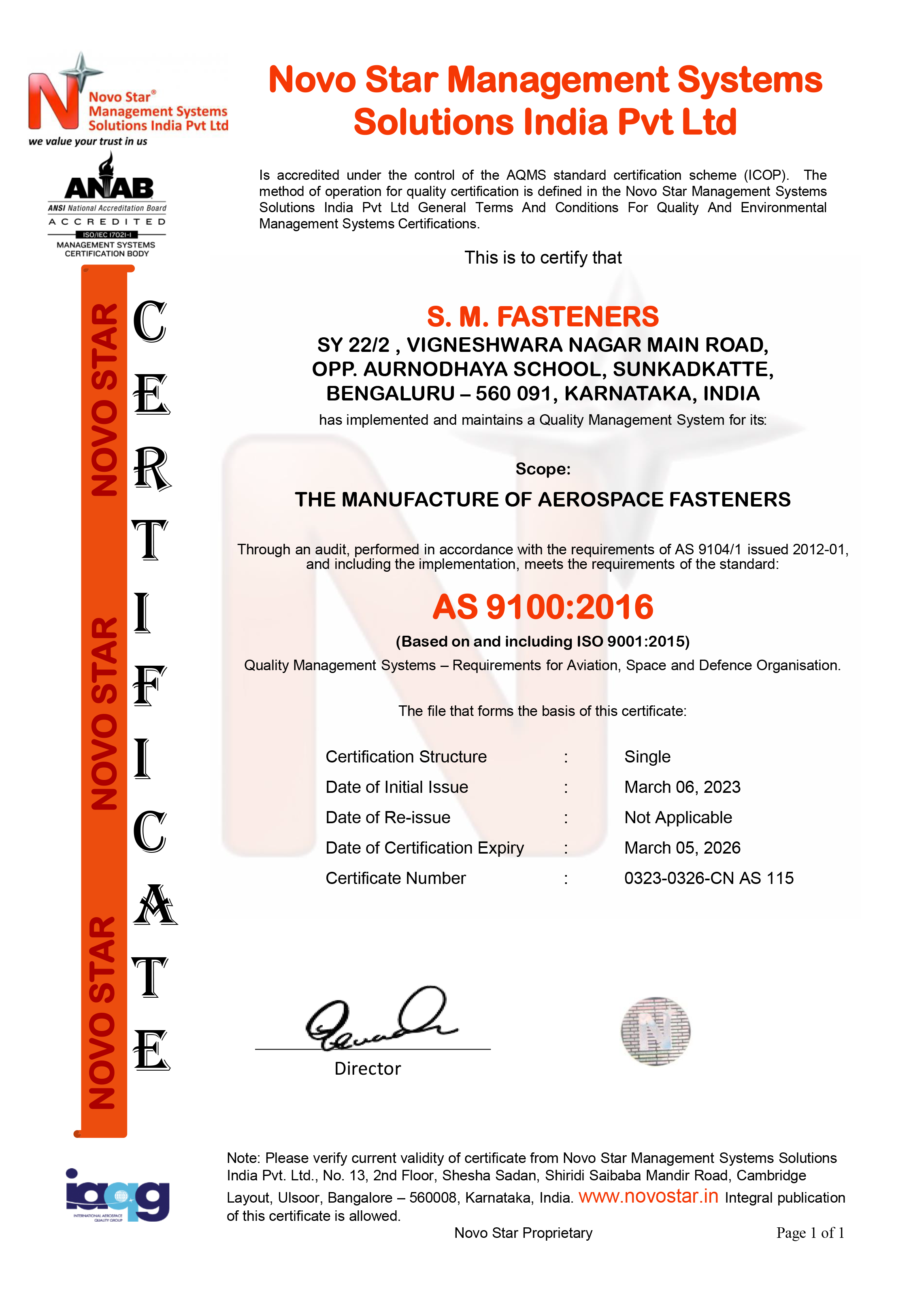 S.M Fasteners, a dynamic company, in bangalore, India, has manufacturing high-performance, specialized fasteners for the aerospace industry. SM Fasteners is a vital link for progressive manufactures in industries like Aerospace, Automation, Textile, Electronics, and Home Appliances to connect to the best in fastener technology. Today, rapidly increasing its capability, continuously enhancing quality and expanding capacity, Indian aerospace fastener market.