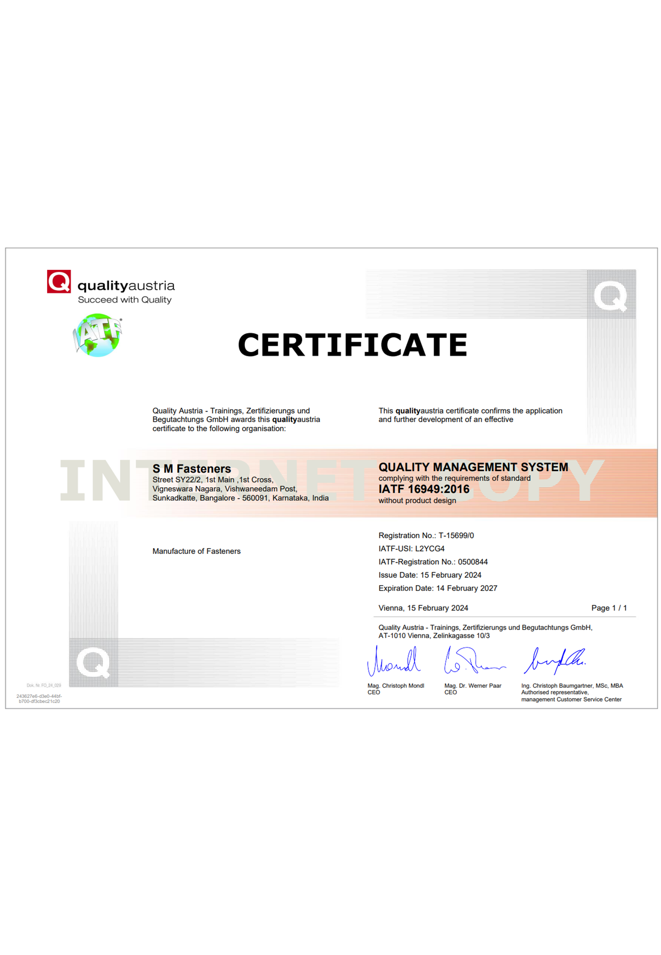 S.M Fasteners, a dynamic company, in bangalore, India, has manufacturing high-performance, specialized fasteners for the aerospace industry. SM Fasteners is a vital link for progressive manufactures in industries like Aerospace, Automation, Textile, Electronics, and Home Appliances to connect to the best in fastener technology. Today, rapidly increasing its capability, continuously enhancing quality and expanding capacity, Indian aerospace fastener market.